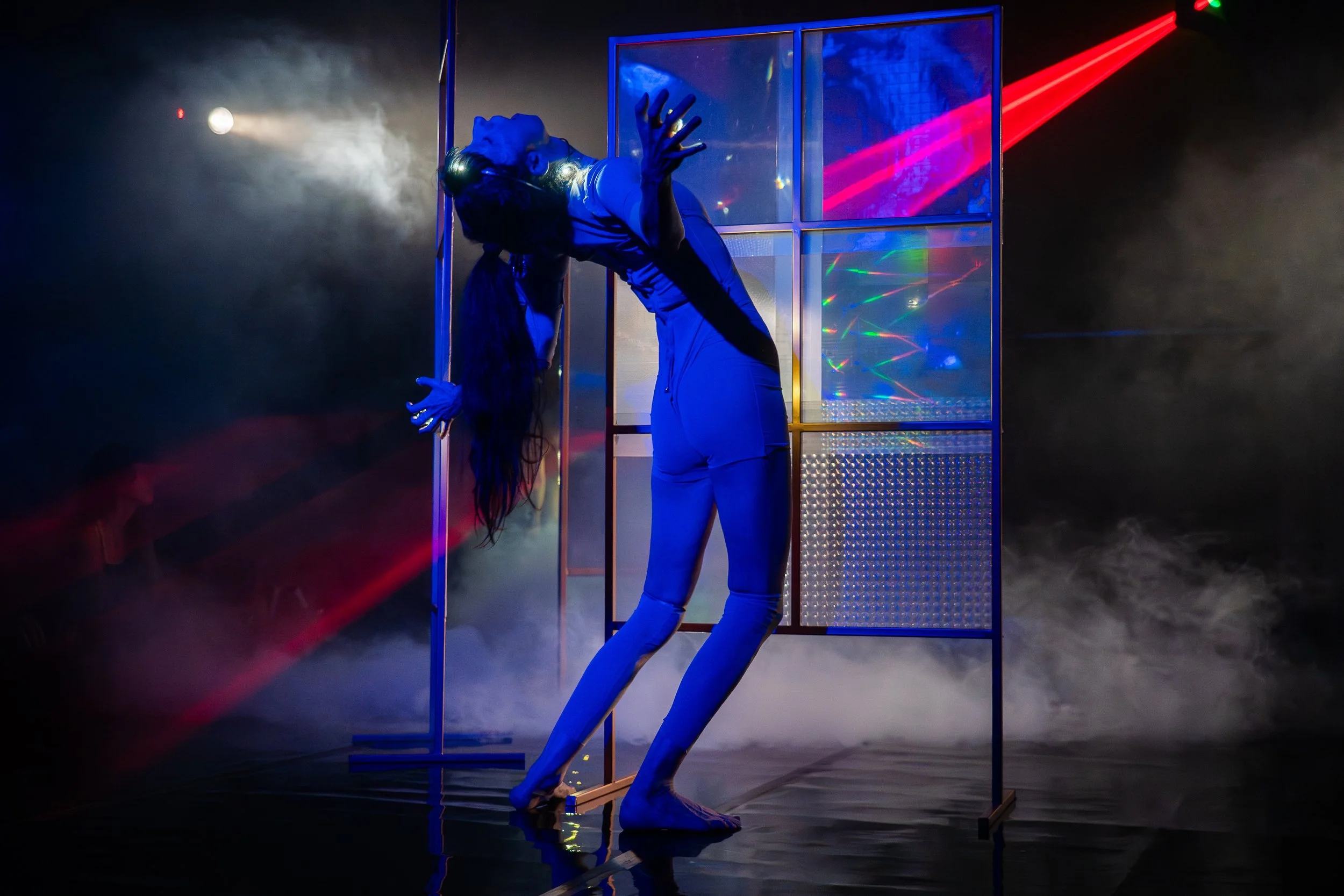 More than theater, EGREGOR is a ritual of the future; a sensory experience that confronts audiences with a dystopian vision of Mexico: a landscape where humanity dissolves into its digital reflection, giving life to an entity born from the collective unconscious. Through butoh and neoclassical dance, acrobatics, live music, and immersive projections, the work becomes a portal that invites viewers to question their relationship with technology and artificial intelligence.