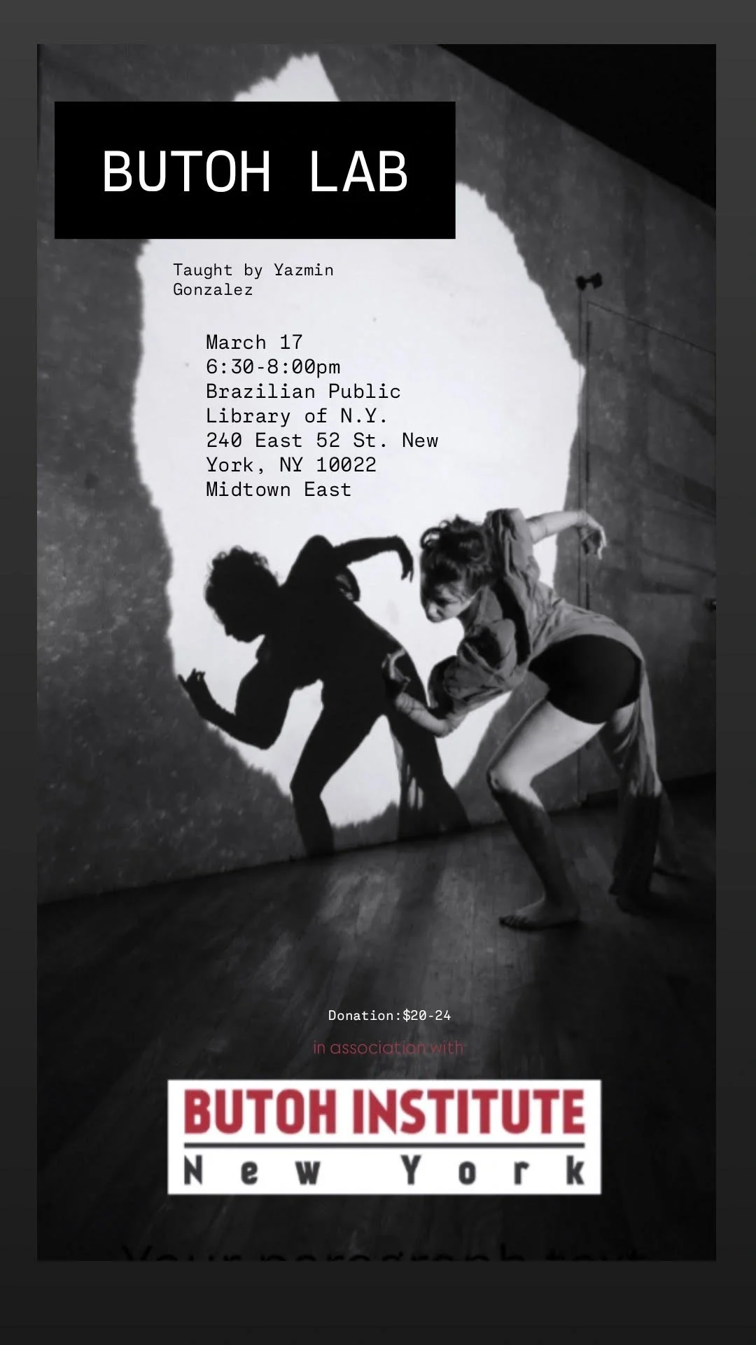 Butoh Lab is designed for beginners, the curious, and anyone experiencing blockages in their somatic identity.